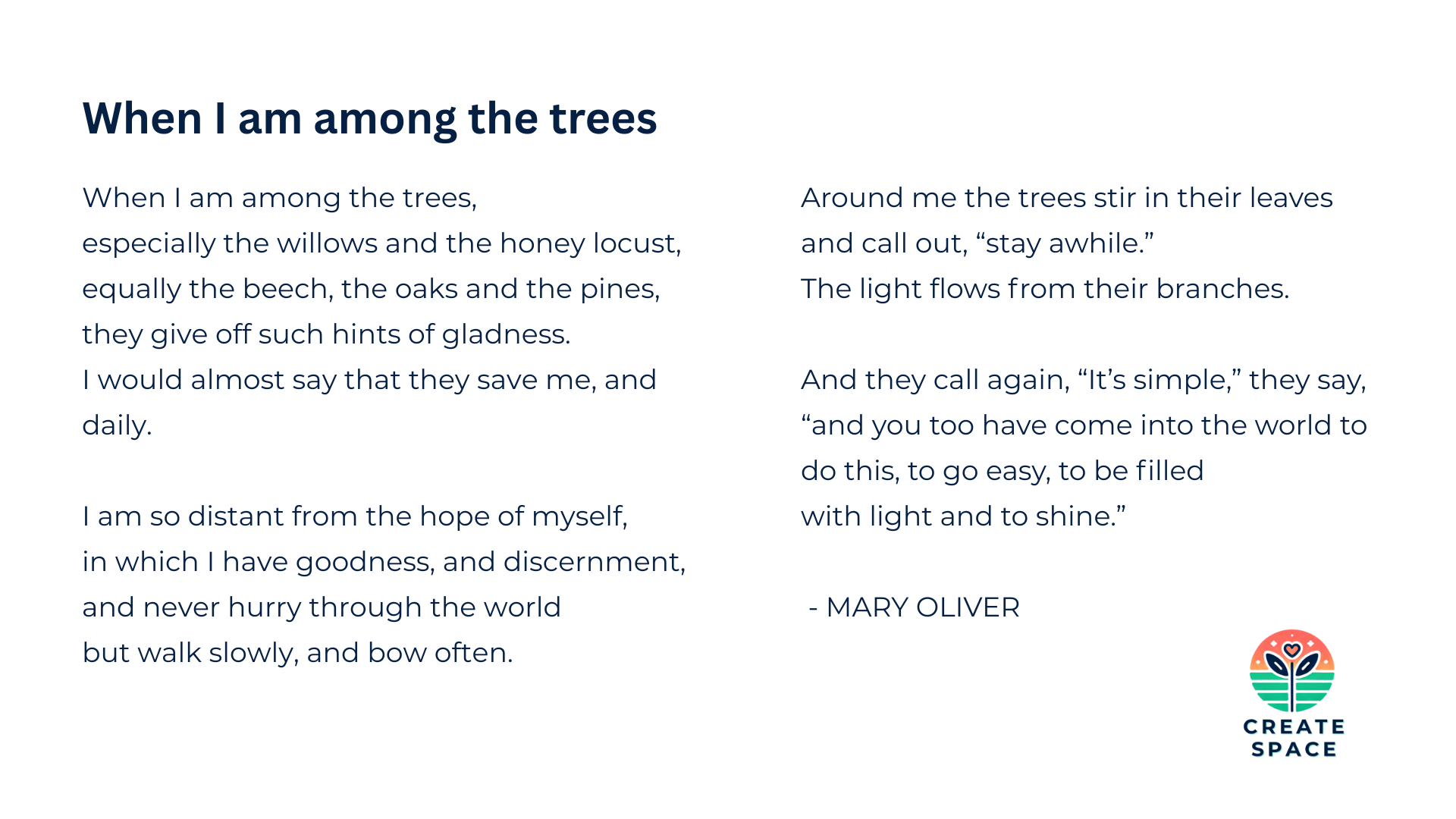 Click here to download and print the poem. Hang it somewhere to remind yourself that you have everything you need - you just need to slow down and remember.